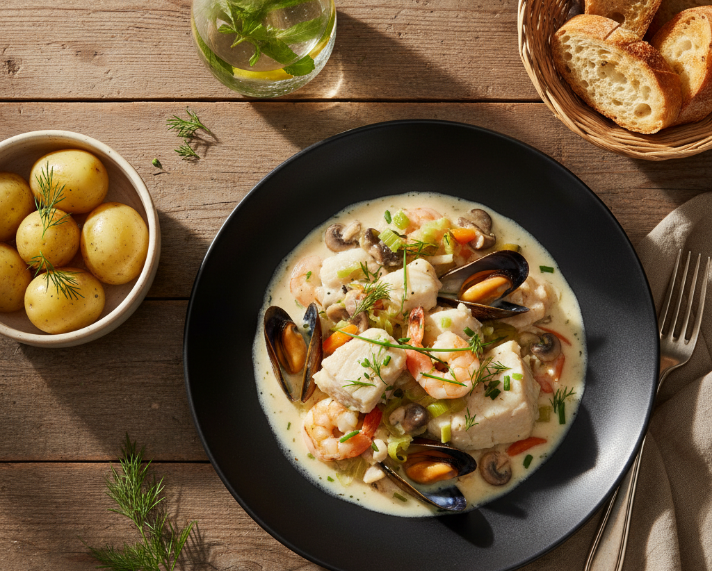 - Mettre les cubes de saumon et de cabillaud dans la cuve.