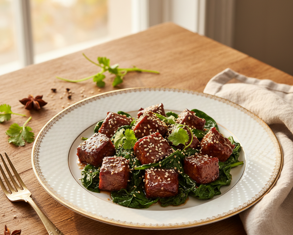 Boeuf caramélisé aux épinards