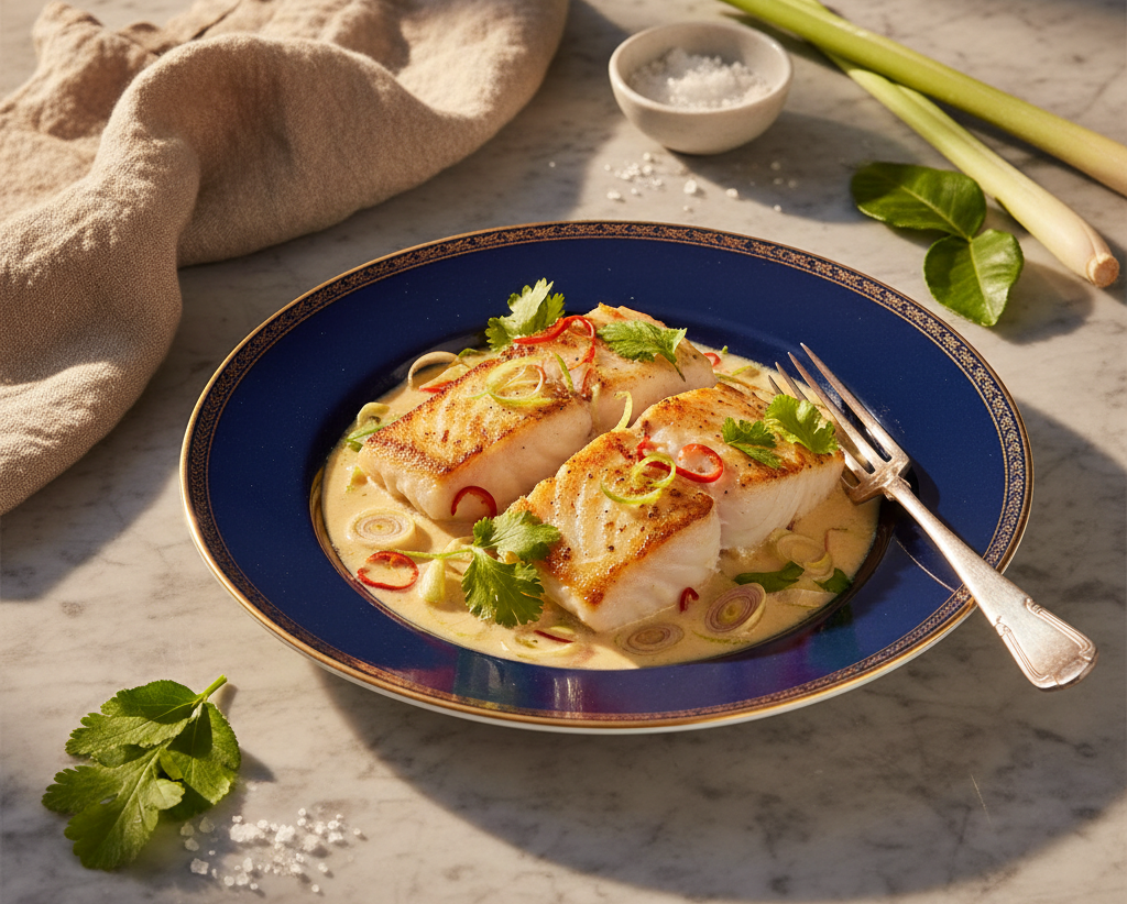 Recette Cabillaud coco et citronnelle au Cookeo - Plat principal Exotique - Photo du plat prêt à déguster