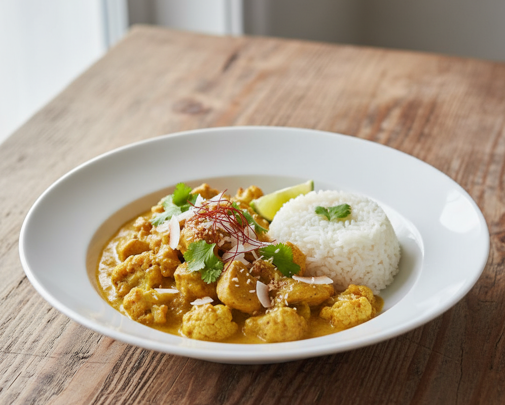Chou-fleur et Dinde au Curry Coco – Recette Cookeo
