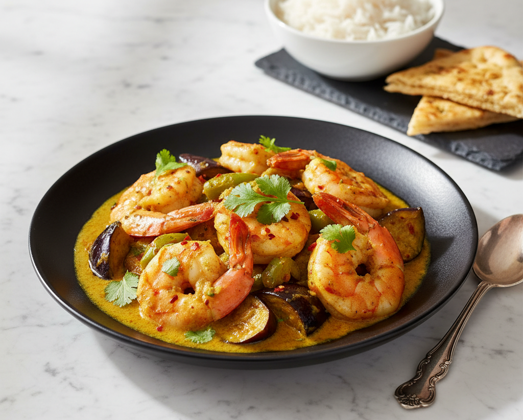 Les crevettes au curry aux aubergines sont un plat savoureux qui allie les influences asiatiques et la cuisine française. Ce plat coloré se compose de crevettes juteuses, de morceaux d’aubergines fondants et d’une sauce au curry parfumée. Les épices réchauffantes apportent une touche d’exotisme, tandis que la douceur de l’aubergine équilibre parfaitement les saveurs. Cette recette est idéale pour un dîner entre amis ou en famille, et avec le Cookeo, la préparation devient un jeu d’enfant. En un rien de temps, vous pouvez savourer un plat réconfortant et plein de goût, sans passer des heures en cuisine.