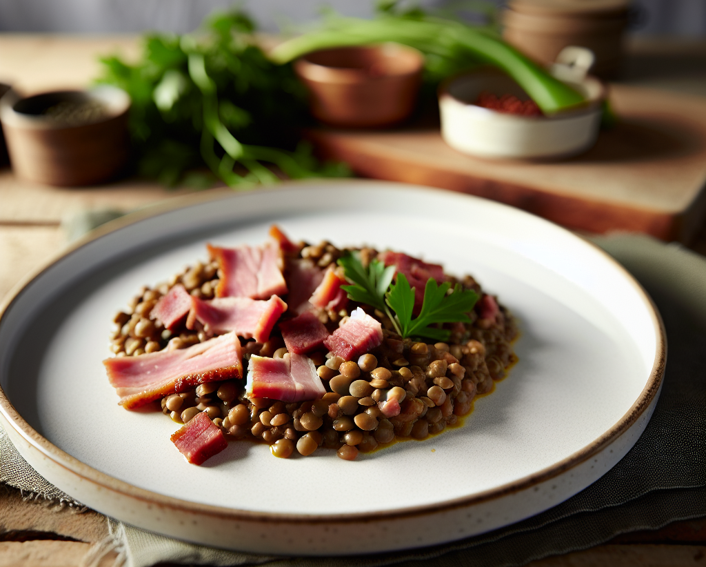 Le petit salé aux lentilles est un plat traditionnel français, réconfortant et riche en saveurs. Ce mélange de viande de porc, généralement du lard ou de la poitrine, accompagné de lentilles vertes, crée une harmonie parfaite entre le salé et le terreux. Les lentilles sont une excellente source de protéines et de fibres, ce qui en fait un plat nutritif et rassasiant. Servi en hiver ou lors de repas familiaux, ce plat est un véritable symbole de la cuisine de terroir. Grâce au Cookeo, la préparation est simplifiée : la cuisson sous pression permet de gagner du temps tout en développant les saveurs. À vos fourneaux !