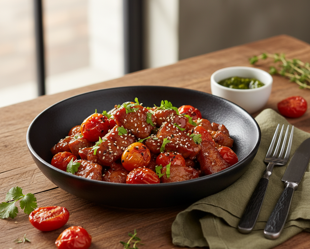 Porc caramélisé aux tomates