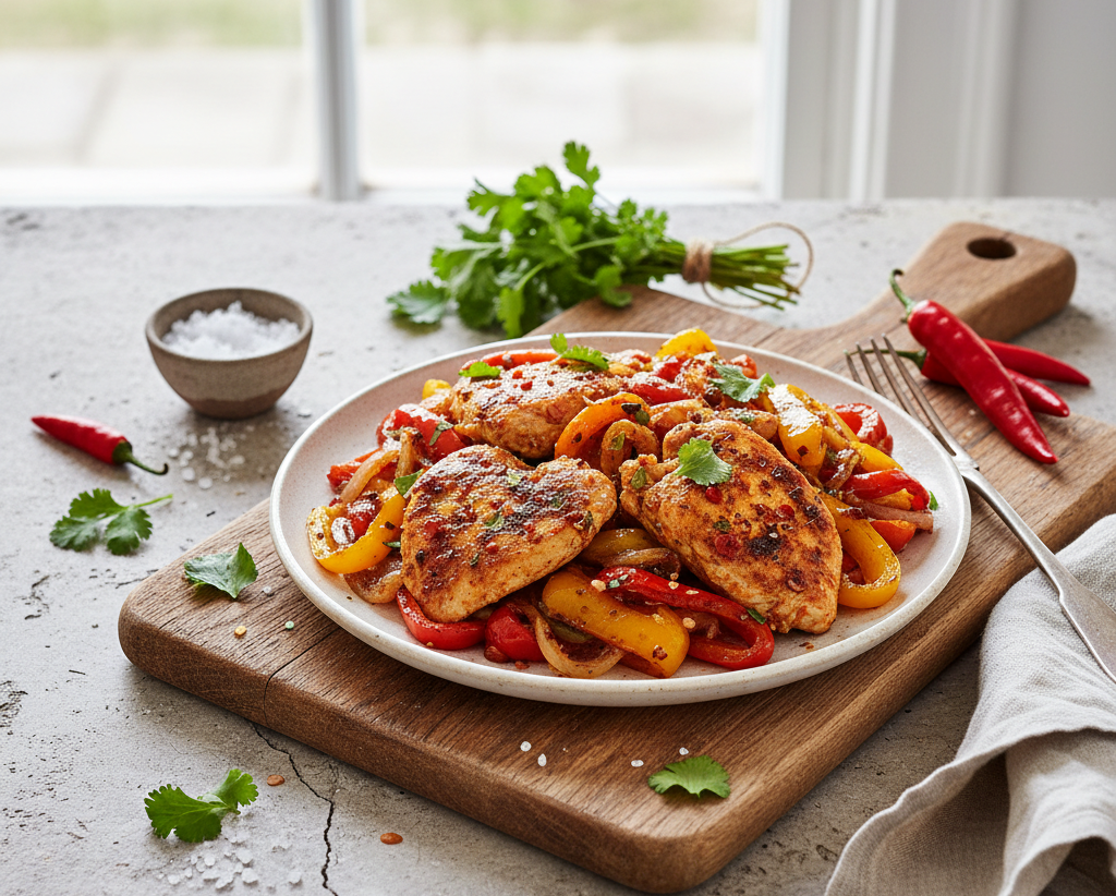 Poulet épicé aux poivrons