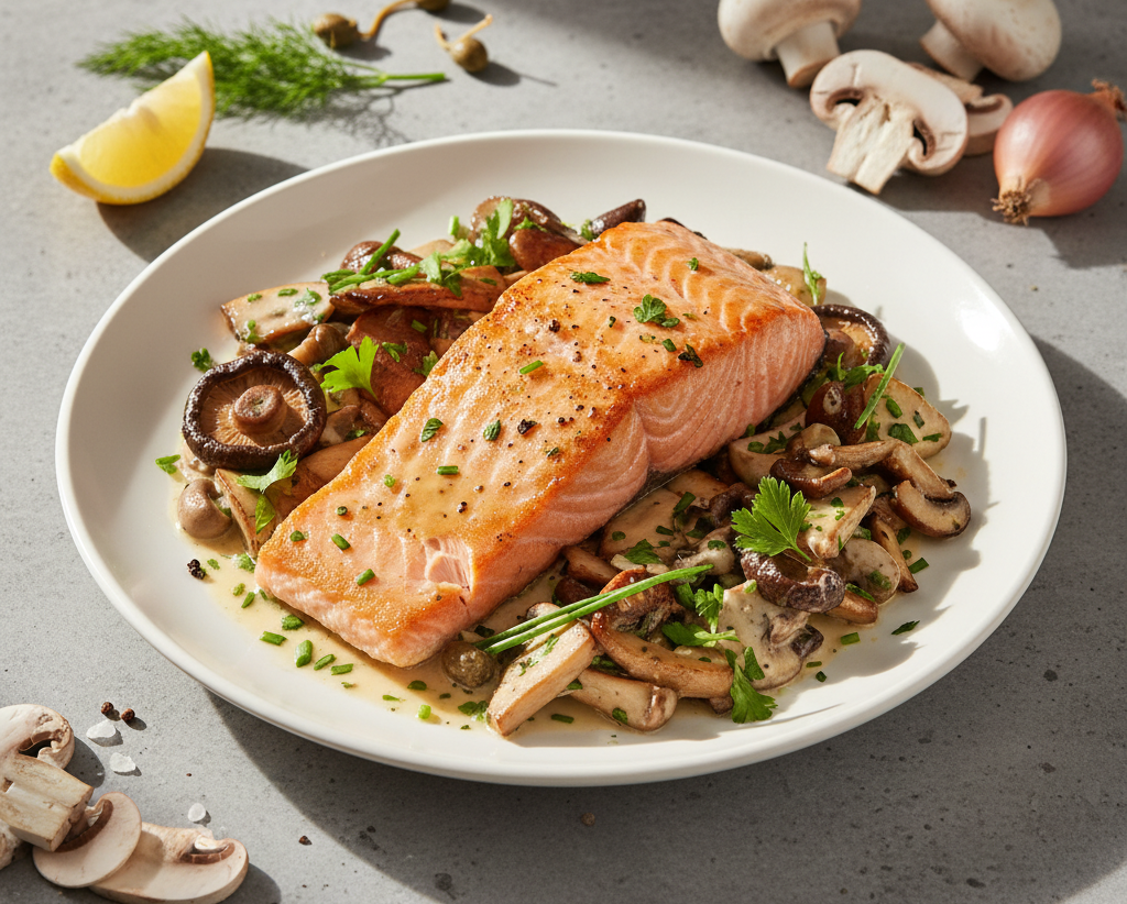 Saumon sauté aux champignons