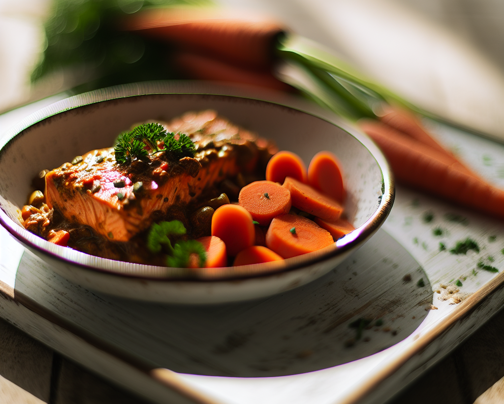Le Saumon Tikka Masala aux Carottes est un plat inspiré des saveurs indiennes, alliant le goût délicat du saumon à une sauce crémeuse et épicée. Cette recette offre une expérience culinaire riche et réconfortante, parfaite pour un dîner en famille ou entre amis. Les carottes ajoutent une touche de douceur et de croquant, équilibrant parfaitement les épices. Grâce au Cookeo, la préparation est simplifiée, permettant de cuire le saumon à la perfection tout en infusant les saveurs des épices en un temps record. Un plat qui allie nutrition et plaisir, idéal pour un repas rapide en semaine.
