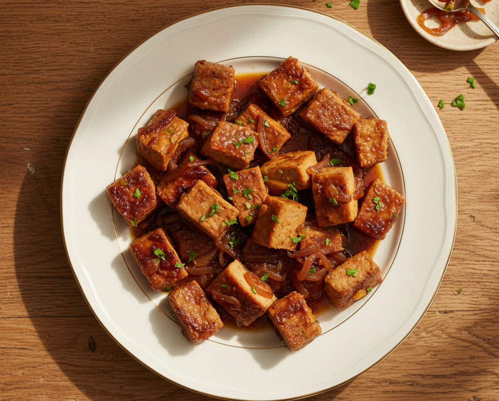 Le seitan, souvent appelé « viande de blé », est une alternative protéinée prisée des végétariens et véganes, offrant une texture étonnamment similaire à celle de la viande. Originaire d’Asie, il est principalement fabriqué à partir de gluten, ce qui en fait un aliment riche en protéines et faible en glucides. Dans cette recette, le seitan est sauté avec des oignons caramélisés, apportant une douceur et une profondeur de saveur irrésistibles. Ce plat est non seulement délicieux, mais également nutritif, fournissant une bonne dose de fer et de fibres. Parfait pour un dîner rapide en semaine ou un repas convivial entre amis, le Cookeo simplifie sa préparation en réduisant le temps de cuisson. En quelques minutes, vous obtiendrez un plat savoureux qui ravira tout le monde, même les carnivores !