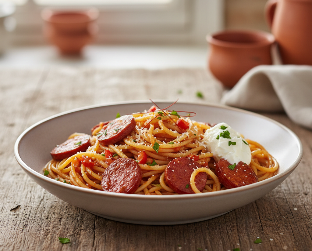 Recette Spaghettis au chorizo au Cookeo - Plat principal Italian - Photo du plat prêt à déguster