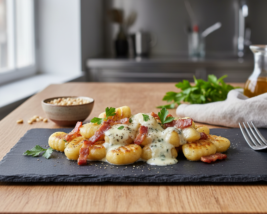- Ajouter les gnocchis, la crème fraiche, le fromage.